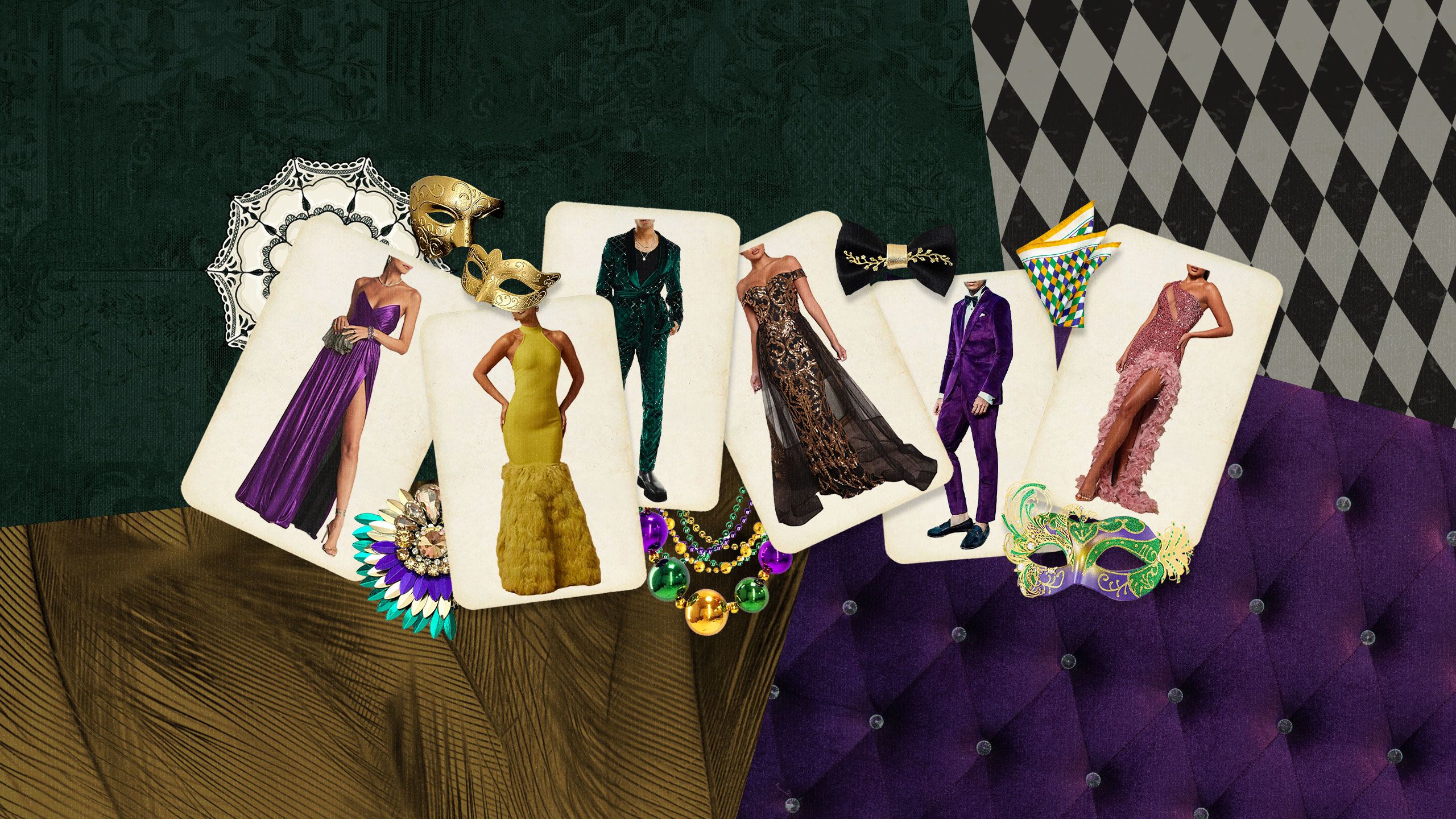 Get gussied up with beads, baubles, and boas for our Big Easy shindig, and embrace the spirit of Mardi Gras behind a glittering mask.