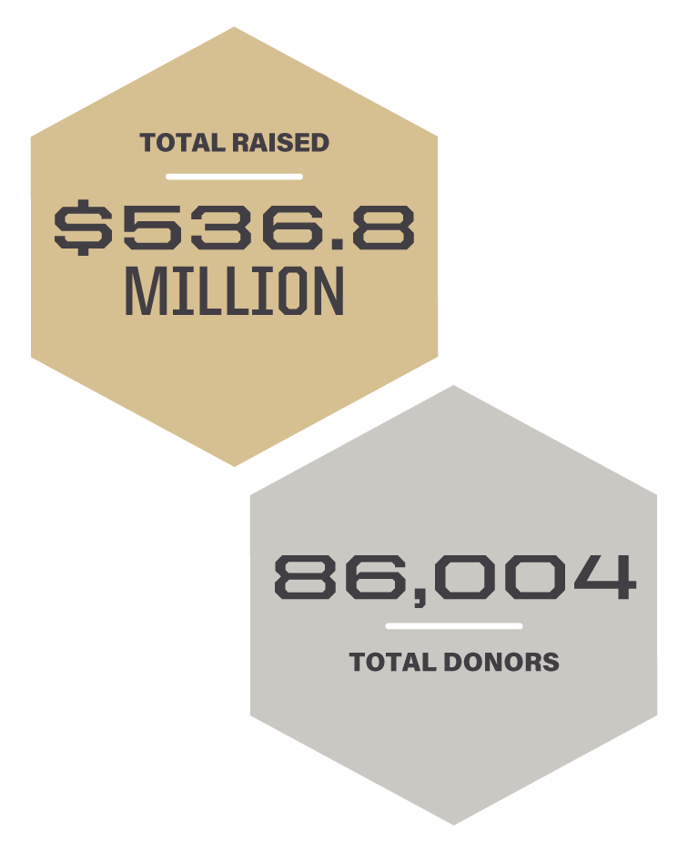 Thank you to everyone—alumni, faculty, staff, retirees, students, parents and families, friends, fans, and our corporate and foundation partners—for another year of giant leaps.